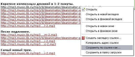 | Ща исправляю http://mp3.music.lib.ru/mp3/d/deanimator/deanimator-10_dekabrja-2.mp3 Надо просто в строку адреса ее вставить, тогда качает